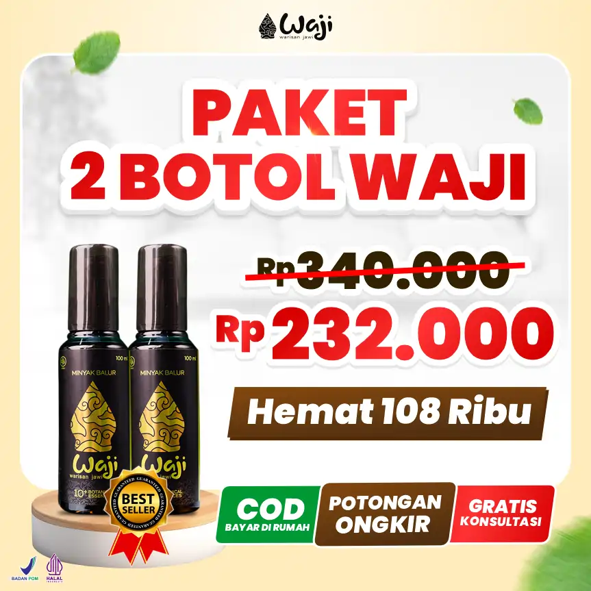 “Setiap hari sibuk di dapur dan ngurus rumah, badan sering pegal-pegal. Tapi sejak pakai Minyak Waji, badan jadi segar lagi dan siap lanjut beresin semuanya!”